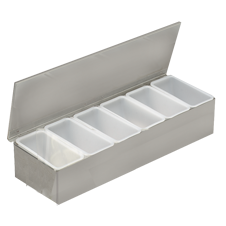 Cocktail pynt beholdere i rustfri stål. Denne model har 6 rum.